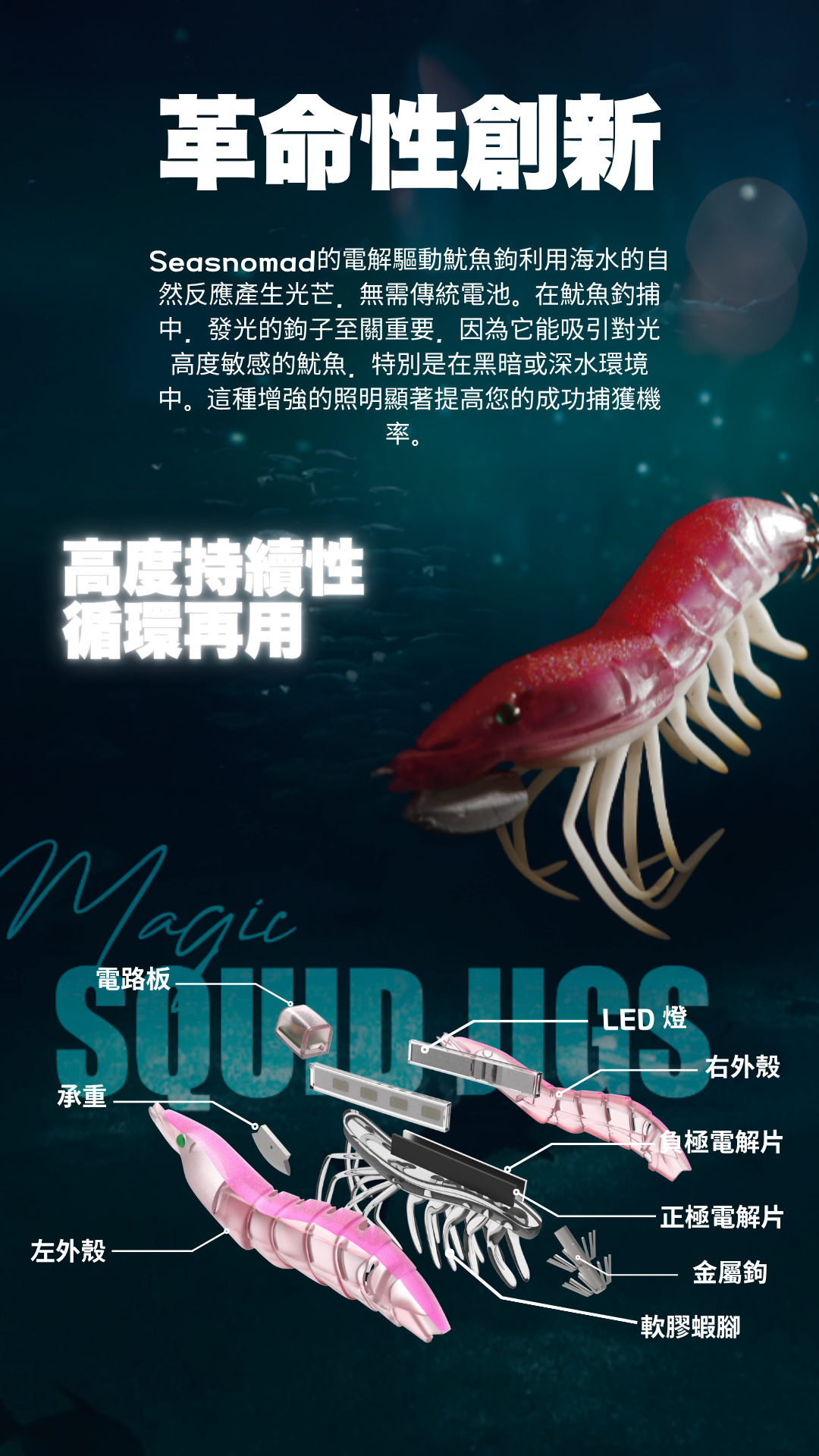 與依賴一次性螢光棒或電池的傳統魷魚鉤不同,我們的設計將可持續性推向更遠。大多數魷魚鉤在電池耗盡時會被完全丟棄,而我們的鉤採用可替換的鎂板。這確保鉤能重複使用,減少廢棄物,為釣魚者提供更生態友好的解決方案。你不需要一次過使用6小時,當離開海水後,燈光會馬上熄掉,可留待下次使用, 總發光時間為6小時。